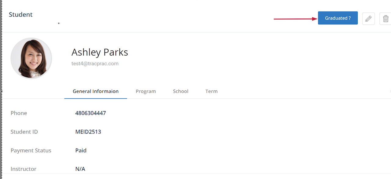 TracPrac® Program Head access provides the ability to deactivate or archive students when they graduate from the program or withdraw.