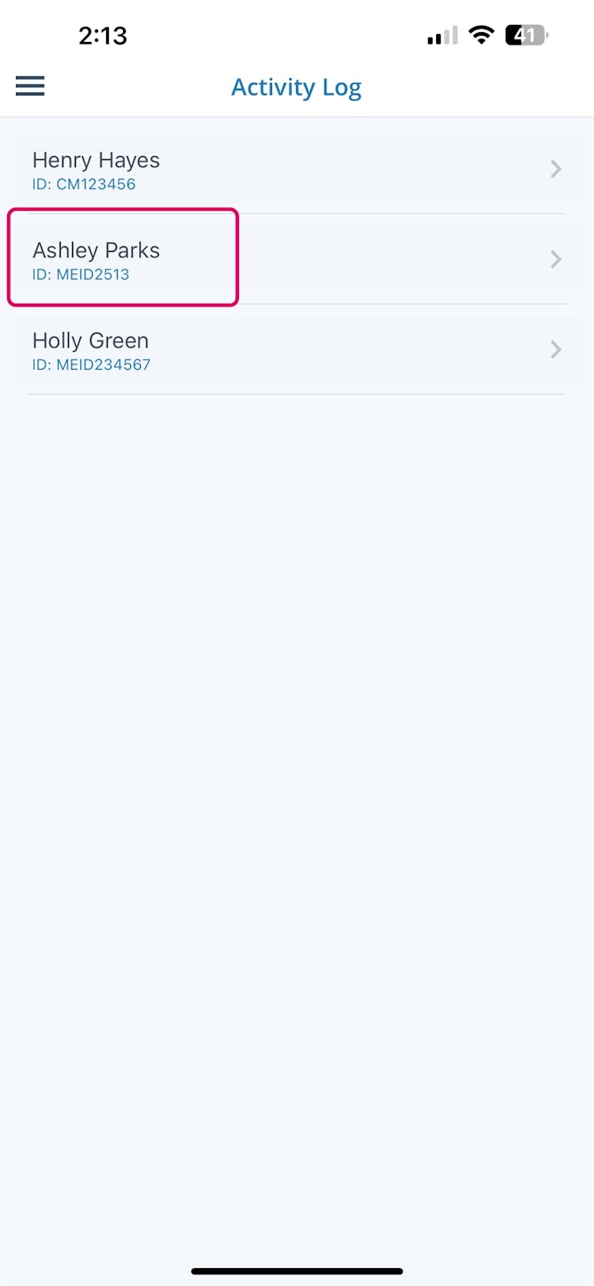 3. On the Default screen or Activity Log, Select the Student Name. *If no names are showing, there are no pending activities to Grade.