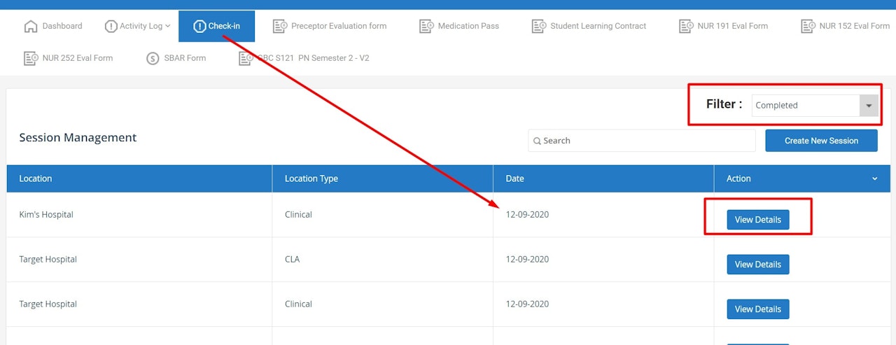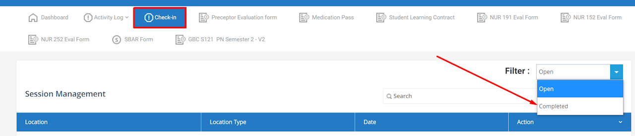 TIP: These steps allow students to check which Sessions or Skills activities were submitted to the Instructor for validation.
