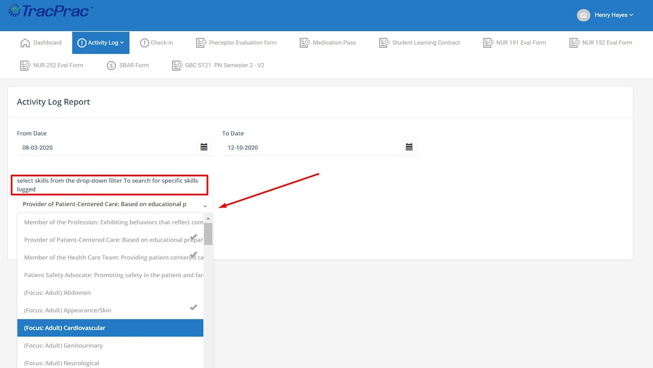 5. To Filter specific skills/activities, Click the drop-down to ADD Multiple Items