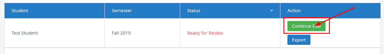 4. Click CONTINUE EVAL to open & review the instructor's evaluation