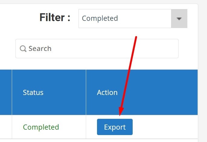 5. Click on the Export button next to the completed status to Export a PDF copy (as shown in image 2)
