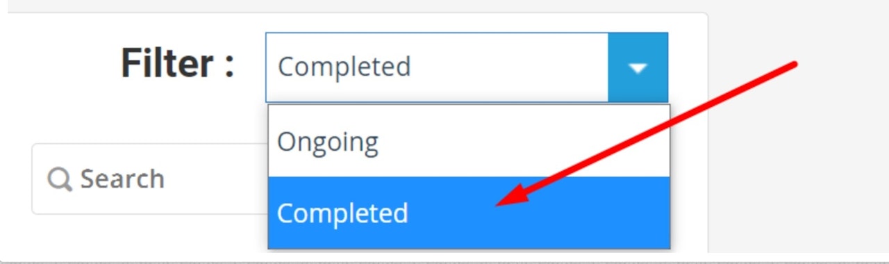 4. If your evaluation is completed for the semester, Select Completed from the Filter drop-down in the top-right corner of the page. (as shown in image 1)